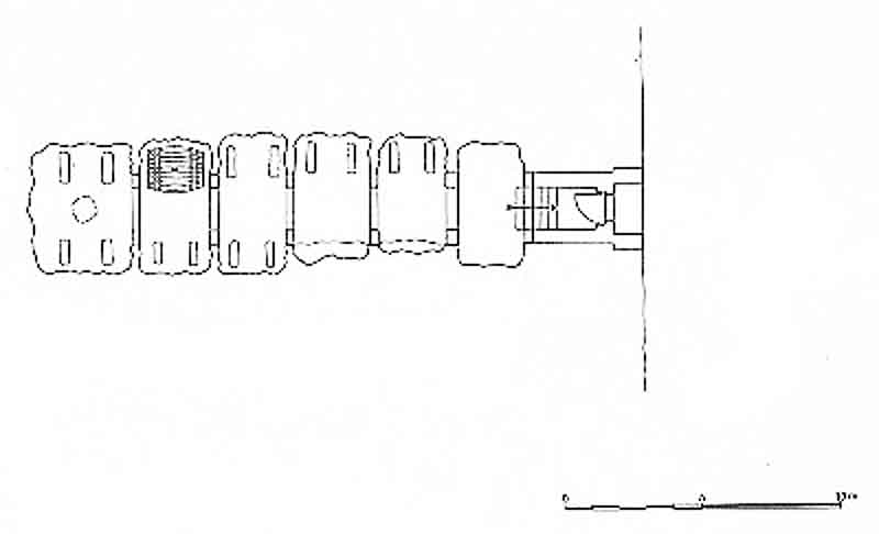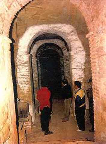 Excavada en la ladera, su acceso se encuentra cobijado en el interior de una estructura de ladrillo coronada por arco rebajado, cuya parte inferior (enlucida con cemento) ha sido reformada en las últimas décadas para darle un aspecto de “arco de herradura”. La puerta propiamente dicha de la bodega es adintelada; sobre ella se abre un hueco circular de ventilación.